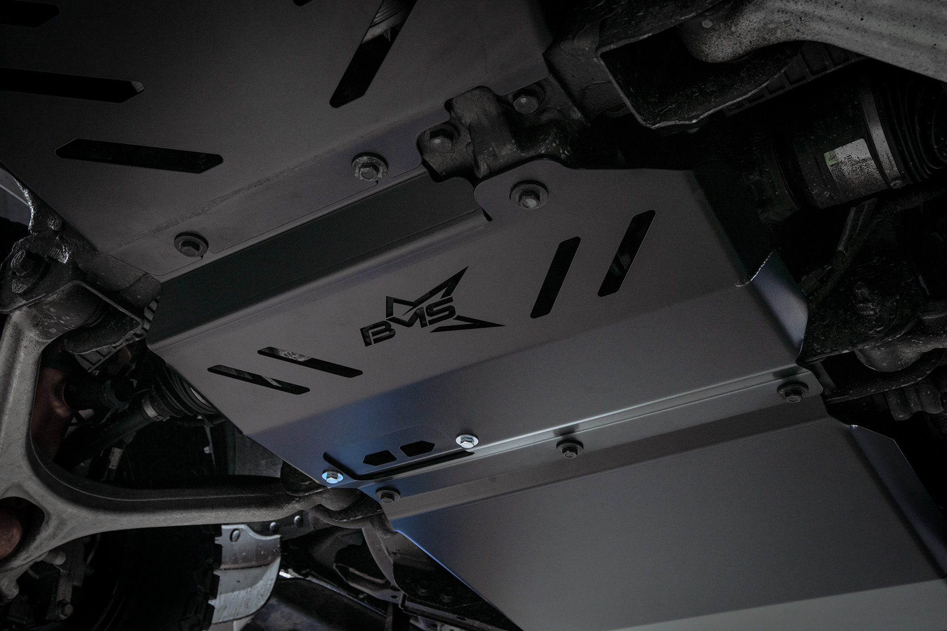 BMS Engineering проектирует каждое изделие под конкретный автомобиль – вот почему защита BMS на Ford Ranger Raptor устанавливается без доработки, на штатные точки крепления. Алюминий или сталь – выбор материала зависит от ваших задач.